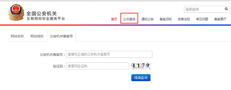 可根据网站名称、域名、公安机关备案号来查询是否已经存在备案,如没有查询到则为未备案,请按照以下操作进行备案。